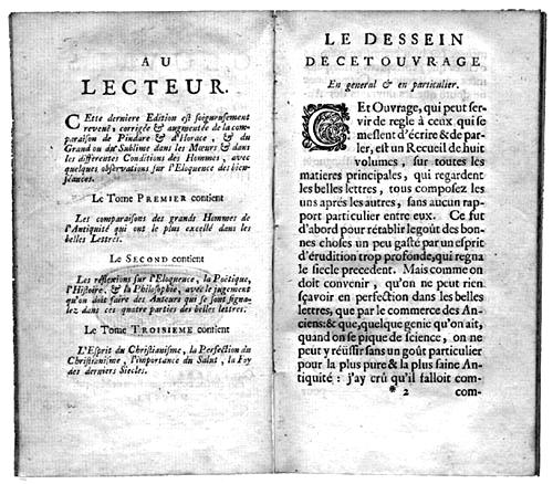 Les oeuvres du P. Rapin, 1709 | Page de titre | Pages 2 & 3 | lettrine