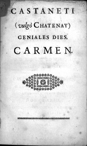 Castaneti (vulgo Chatenay) Geniales Dies Carmen, 1714 Titre | faux-titre| première page| dernière page