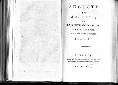 F. T. Delbare, Auguste et Justine ou la veuve artificieuse, 1810
