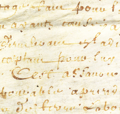 L'encre très pâle et l'écriture très cursive rendent la lecture difficile.
