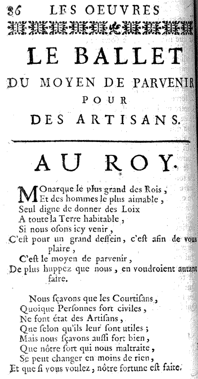 Le ballet du moyen de parvenir pour les artisans