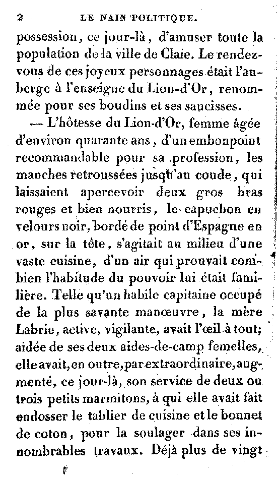 Comtesse de Choiseul-Gouffier, Le Nain politique, 1827 Titre et frontispice | frontispice I | frontispice II | frontispice III | introduction | pages 1, 2 et 3 du roman