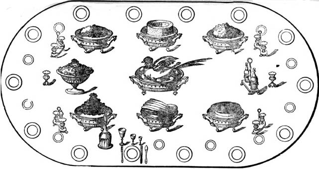 Un potage, six entrées, deux hors-d'oeuvre chauds, quatre hors-d'oeuvre froids, un huilier