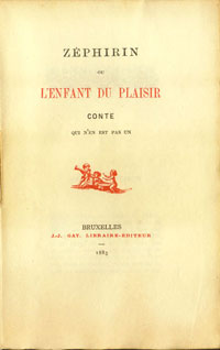 J.-J. Gay, 1883 "Zéphirin, ou l'Enfant du Plaisir, conte qui n'en est pas un, est un ouvrage anonyme qui a paru pour la première fois à Paris, en l'an VII (1799), en un volume in-18 de 108 pages, dont les quatorze dernières sont occupées par des poésies et deux contes un peu gais : le Vieux Toit, imité de Douville, et l'Appartement en deuil ; en outre quatre figures libres se rapportant aux pages 14, 19, 39 et 48. Ces figures sont assez jolies bien qu'elles soient assez mal gravées. Ce petit ouvrage est recherché et il était devenu fort rare : une réimpression faite avec soin était réclamée par les amateurs ; nous la donnons aujourd'hui, mais sans gravures" Préface à cette édition |
