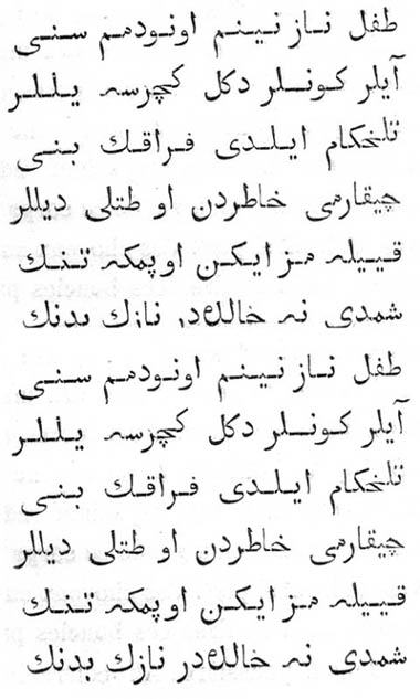 ![]() Charmant enfant, en vain les mois, les jours, les années se succéderont, je ne pourrai jamais t'oublier. Ton départ a rempli mon coeur d'amertume. Hélas ! j'entends encore ta voix si douce et si caressante. Ces membres si délicats qu'on osait à peine effleurer des lèvres, que sontils devenus? Ah! qu'au souvenir de ta bouche de rose, les roses brûlées par mes soupirs soient réduites en cendres ! Quoi, la corruption a gagné ce corps d'argent et a rendu livide ce front si pur ? Ces cheveux aux tresses d'or sont répandus en désordre, ces boucles parfumées sont dispersées dans la poussière! Ah ! colère du ciel impitoyable dans ses coups! Quoi, les roses de tes joues sont fanées sans retour, et tes mains de velours, si douces à caresser, sont maintenant réduites en poudre! (Trad. de M. PAVET DE COURTEILLES.) ![]()