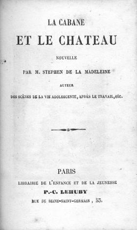 Stephen de la Madeleine, La cabane et le château, nouvelle, auteur des scènes de la vie adolescente, Après le travail, etc. Paris, Librairie de l'enfance et de la jeunesse P.-C. Lehuby, rue de Seine Saint-Germain, 53. sans date (1847). Illustration 1 Ouvrage réédité