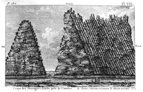 Essai sur la minéralogie des Monts-Pyrénées : Planche 1 | 2 | 3 | 4 | 5 | 6 | 7 Pl. VIII : coupe d'une montagne située au nord de Gabes © Textes Rares