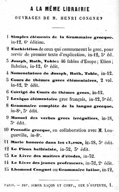 Henri Congnet, Le Pieux Helléniste, 1857 Titre | préface | exemple d'une double page page en Grec | reliure | catalogue des ouvrages de l'auteur