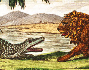 Auboin, Faune des enfants. Masson et Yonat, 1831. Gravures en couleurs Lion et crocodile Héron Oiseaux de paradis Araignée et scorpion Singes Coléoptères Cachalots Chien Hérons Castors Sauterelles Abeilles Poissons