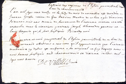 Extrait de registre de l'église de la paroisse du lieu de Chateaurenard, 1730