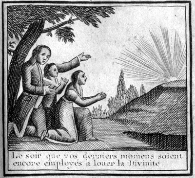 première page page 28 haut : "Le soir que vos derniers moments soient encore employés à louer la Divinité" bas : Piété filiale page 44 page 63 page 108 page 125 page 132